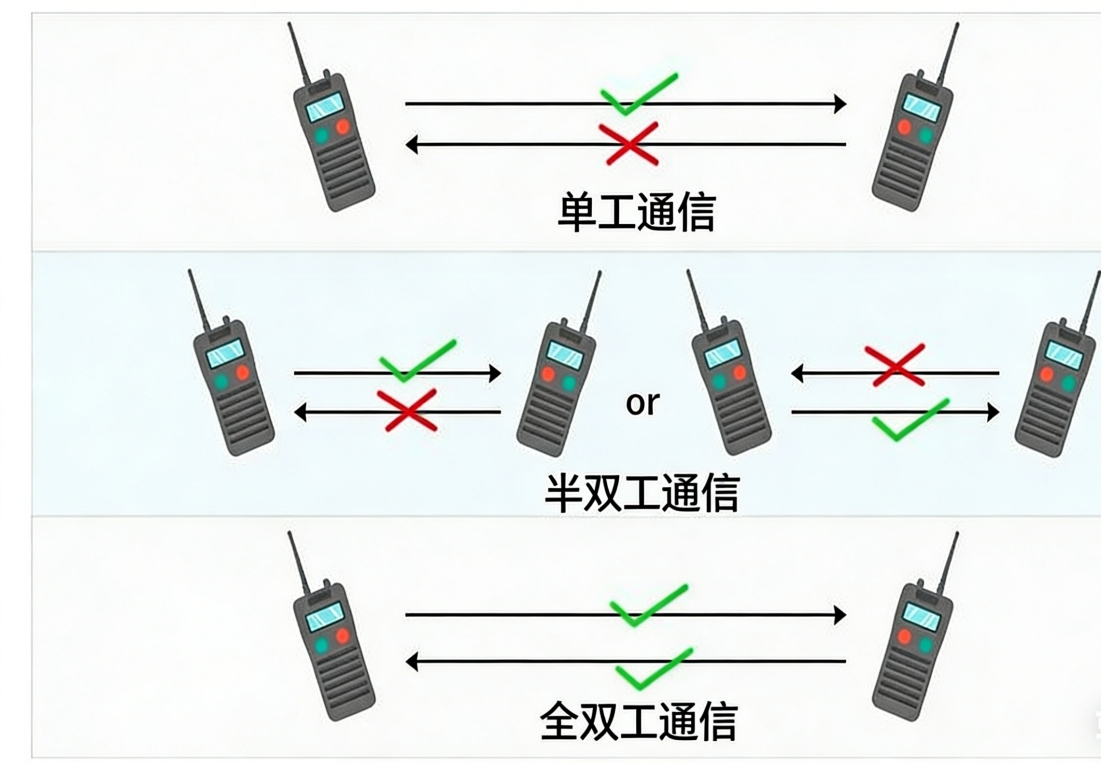 最经典的例子,就是对讲机:两个人各持一台对讲机,按下通话键时,自己是发送方、对方是接收方;松开通话键,就切换成接收方,只能听对方说话。还有早期的步话机、部分对讲机式门禁,以及我们熟悉的WiFi(本质上是半双工,同一时间,手机和路由器只能有一方发送数据),用的都是半双工模式。